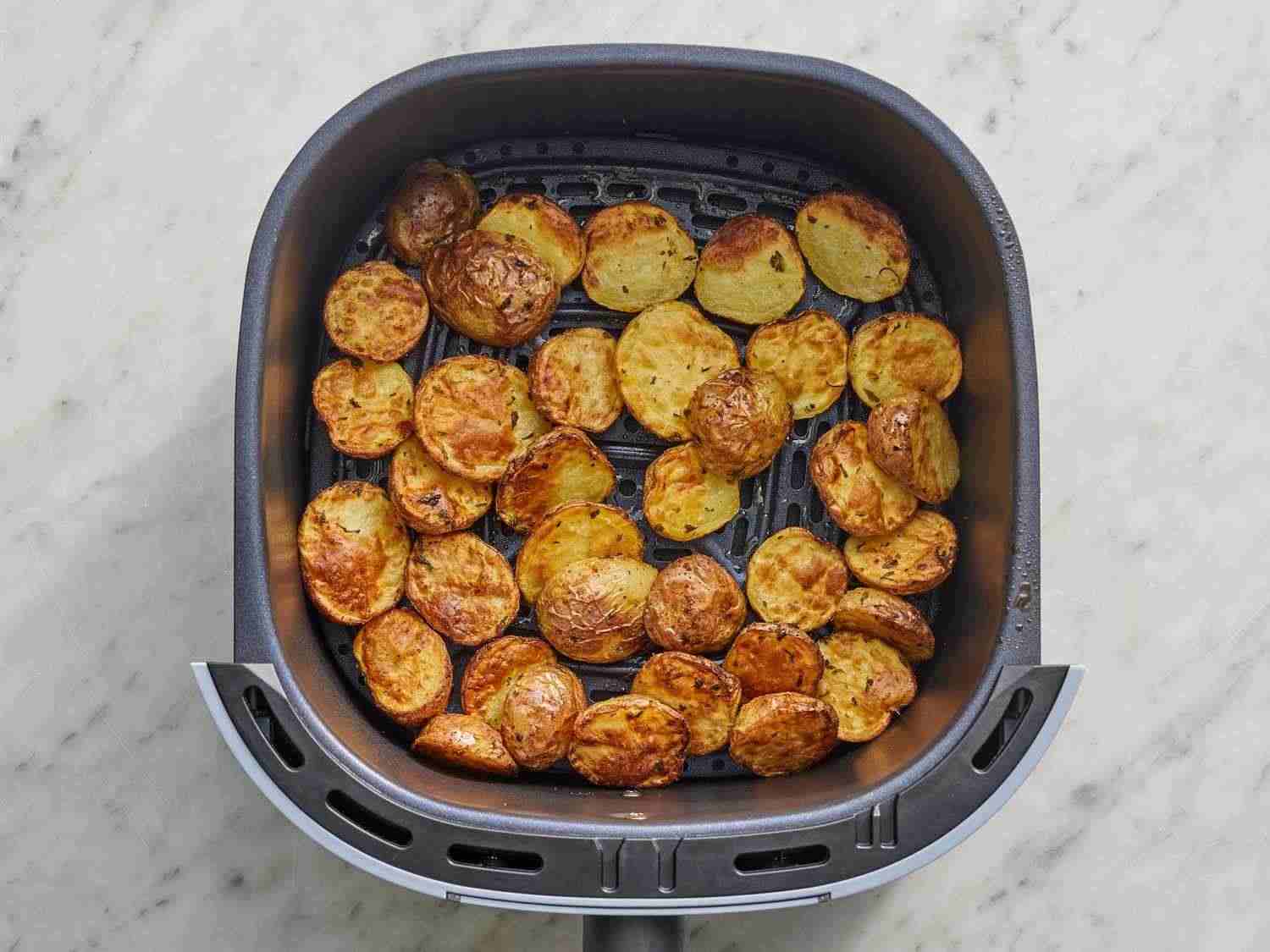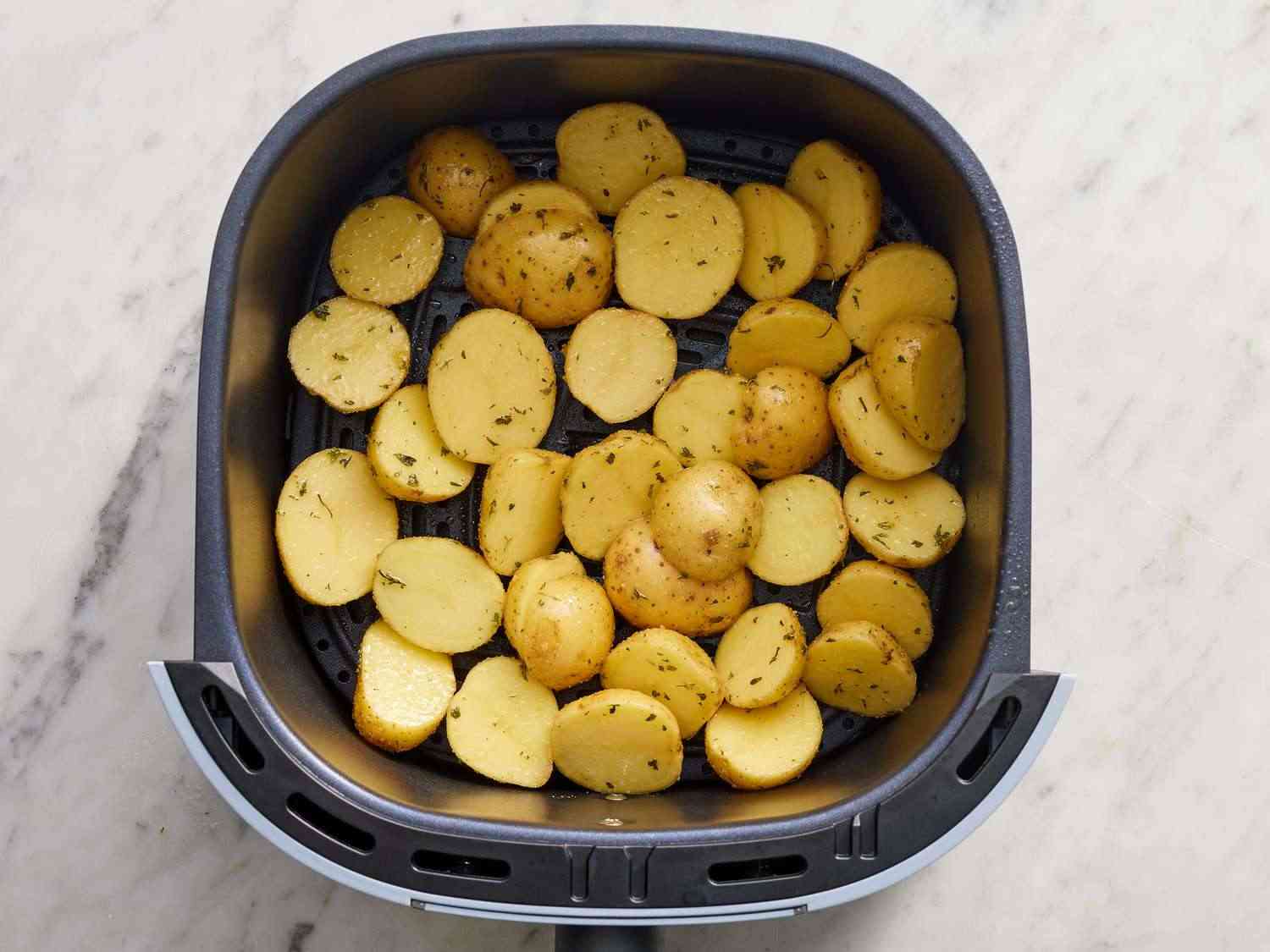 - Step 2:Place potatoes into a bowl; add oil and toss to coat. Add garlic, parsley, and salt; toss until well distributed. Transfer potatoes to the air fryer basket. Dotdash Meredith Food Studios